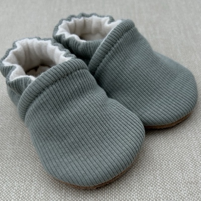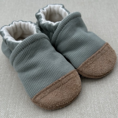 Snow and Arrow is proud to offer basic solids in a wide variety of colors. These slippers are made from high quality Birch brand organic cotton knit. The inner is fully lined in organic cotton fleece and leather soles offer a non-slip slipper for your little one. Hardwood and tile floors are no problem with Snow and Arrow! The elastic ankle is designed to easily go on and gently hug your little one's ankle, but best of all they are going to stay on wiggly feet!