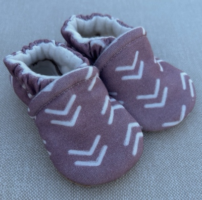 This Snow and Arrow slipper is crafted from 100% organic cotton knit outer and is fully lined with 100% USA grown and milled organic cotton fleece and features a non-slip leather sole. Hardwood and tile floors are no problem with Snow and Arrow!  Our special elastic ankle is designed to easily go on and gently hug your little one's ankle, but best of all they are going to stay on wiggly feet!