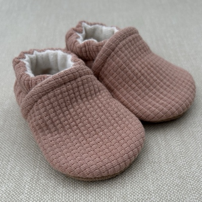 This Snow and Arrow slipper is crafted from 100% organic cotton knit outer and is fully lined with 100% USA grown and milled organic cotton fleece and features a non-slip leather sole. Hardwood and tile floors are no problem with Snow and Arrow! Our special elastic ankle is designed to easily go on and gently hug your little one's ankle, but best of all they are going to stay on wiggly feet!