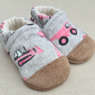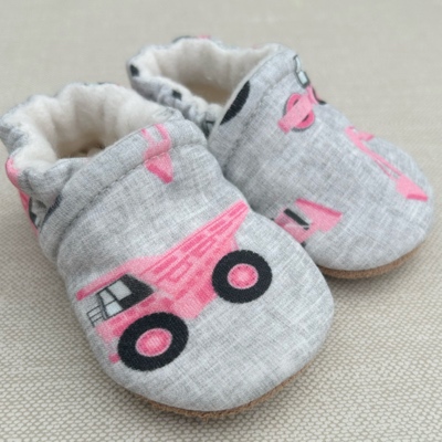This Snow and Arrow slipper is crafted from 100% organic cotton knit outer and is fully lined with 100% USA grown and milled organic cotton fleece and features a non-slip leather sole. Hardwood and tile floors are no problem with Snow and Arrow! Our special elastic ankle is designed to easily go on and gently hug your little one's ankle, but best of all they are going to stay on wiggly feet!
